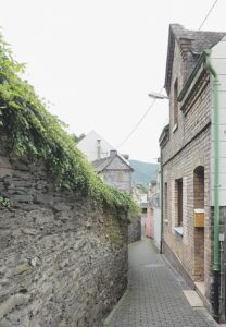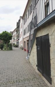 En lillebitte by med fine, historiske bygninger og smalle gyder, der indbyder til at gå på opdagelse. Over byen troner borgen Gutenfels. På klippevæggen under borgen er der skrevet HOTEL med store bogstaver, men lad dig ikke narre: Borgen er i privat eje og ikke tilgængelig.