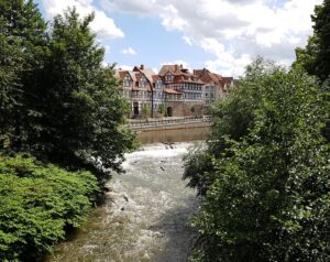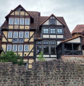 Vi startede besøget ved vandet, for Hannoversch Münden ligger, hvor floderne Werra og Fulda løber sammen og bliver til Weser. Og dén dyppede jeg mine sure tæer i, for det var rigtig lummervarmt og jeg var ved at dø!