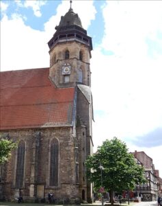 Da jeg var nogenlunde afsvalet, gik vi en tur i byen, men jeg var godt nok i ringe form, og jeg skvattede sammen på en bænk i skyggen ved den imponerende St. Blasius kirke midt i byen og jagede hr. Tyskofyt væk, så han kunne se lidt mere af byen, uden at have mig på slæb – og bringe iskolde cola’er til mig bagefter.