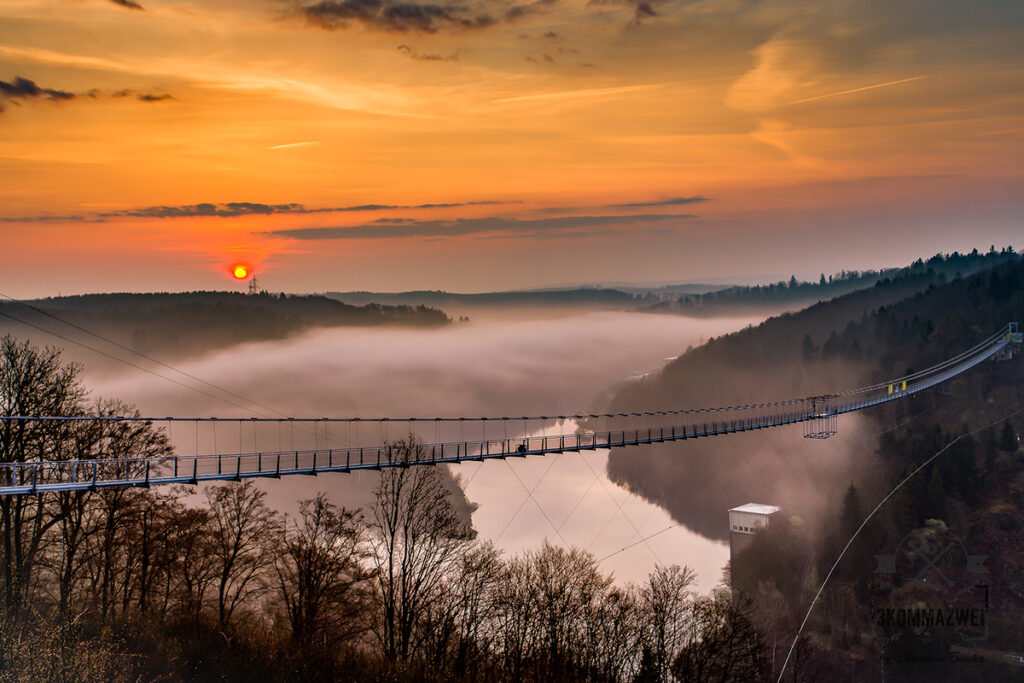 - Titan RT. Hængebroen ved Rappbode-dæmningen. Jeg ønsker vildt at turde gå over broen, men jeg ved jo godt, at jeg ikke tør. Aldrig nogen sinde. Broen er bygget af stålgitre, så man kan “nyde” udsigten alle 100 meter ned til Rappbodedammen – gyyyys. Broen er den længste “af sin art”, hvad det så skal betyde, 450 meter. Dem, der synes, broen lyder for tam, kan muntre sig med en svævetur på samme strækning. Harzdrenalin Megazipline, hvor man får en sele på, bliver spændt fast til en wire og “flyver” over kløften. Vi har set én gøre det. Hun skreg hele vejen. Ikke sådan et muntert nøj-hvor-det-kilder-i-maven-skrig. Et rigtigt, skingert dødsskrig, der fik det til at løbe én koldt ned ad ryggen.