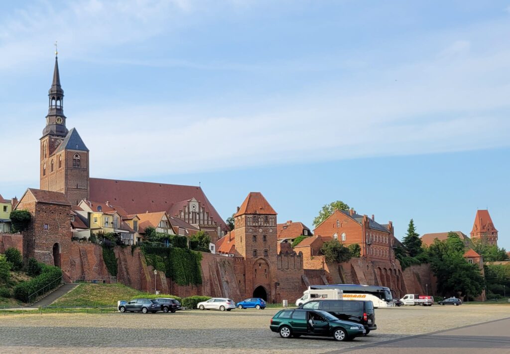 Tangermünde er en af de gamle hansestæder, og det bærer den præg af. Den gamle bymidte er pragtfuld med sine kirker, tårne, imponerende bymur og flotte byporte. Borgen/fæstningen, der ligger i forlængelse af Altstadt, er komplet bevaret. Stor og virkelig flot med fornem udsigt. Borgen og den gamle by ligger højt på et bakkedrag over Elben. Der er trapper ned flere steder, så man kan gå en tur på Elbpromenaden. Det er en skøn travetur med masser at se på.