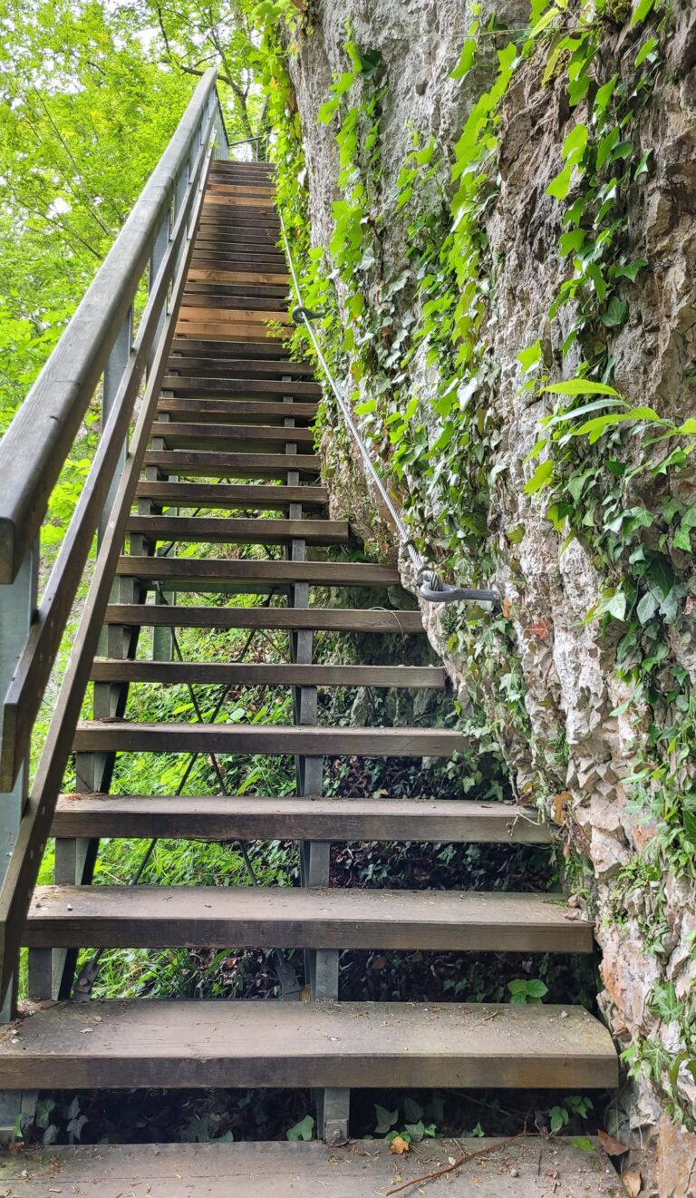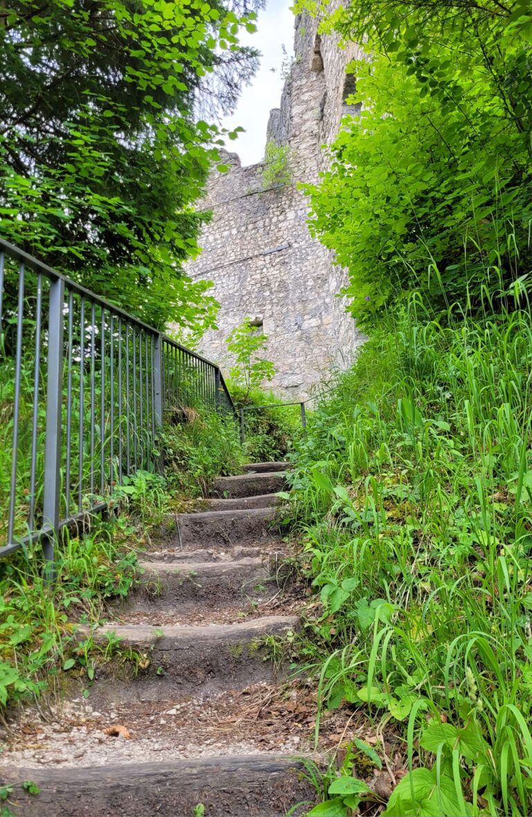 Traveturen op til borgen består mest af trapper – gode, solide, trygge trapper. Vi talte ikke trinene, men vi mødte et tysk par, som også havde været oppe at se valfartskirken St. Pankraz på nabo-klippen. Der er 365 trin op til kirken, hævdede de. Om det stemmer, undersøgte vi ikke. Vi havde nok i at gå op til borgen, og der er i hvert fald ikke i 365 trin, for kirken ligger lidt højere (selv om det grangiveligt føles som om man står på borgen og kigger ned på kirken).