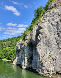 Her sejler man så mellem 80 meter høje, lodrette klippevægge, og får undervejs den flotteste udsigt til Befrielsesmonumentet i Kelheim, Befreiungshalle, som er en kæmpestor bygning på en bjergtop over byen. Set fra floden virker monumentet næsten for stort til sit eget bjerg, men imponerende er det.