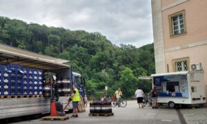 Kloster Weltenburg er Bayerns ældste benediktinerkloster, grundlagt i 620 efter vor tidsregning. Klostret har haft bryggeri siden 1050 og de mener selv, at de har verdens ældste klosterbryggeri, men, æhm, at dømme efter de biler, der kom og afleverede en lind strøm af øl-ankre, bliver al øllet ikke brygget på selve klostret…
