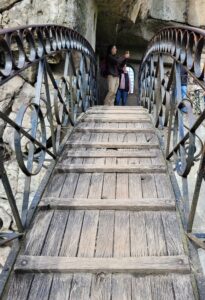 På den ene klippe er der en kort træbro højt til vejrs mellem to klippetoppe, som fru Tyskofyt på forhånd havde forventet, at hun ikke ville turde gå over. Faktisk var hun i tvivl, om hun turde eller for den sags skyld havde kræfter til at komme helt derop, og hun påbegyndte først opstigningen efter at have siddet et godt stykke tid på en bænk og kigget på færdslen, og forvisset sig om, at hun når som helst kunne vende om og gå ned igen!