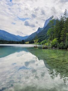 Også i Hintersee er vandet tindrende og lokkende klart. Man får virkelig lyst til at bade, men det går hurtigt over, hvis man ikke har vikinge-tilbøjeligheder. Søen får sit vand fra gletscherne i bjergene, og det er så koldt, at man næsten synes, man kan høre små klumper is klirre.
