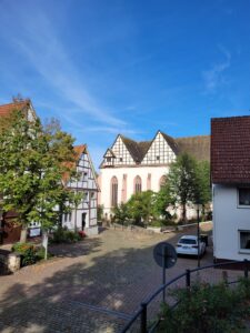Det anede vi dog intet om, så vi var der uden for sæsonen, og der var stort set mennesketomt, selv om det er en virkelig fin og hyggelig by med masser af smukt bindingsværk, bymur og flot borg, der er indrettet som hotel.