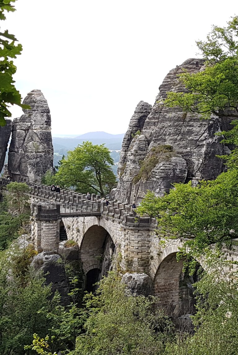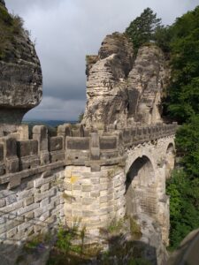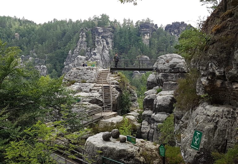 Tyskofyt er ikke i tvivl om den største seværdighed i det gamle Østtyskland. Den SUVERÆNT største! Det er Bastei Brücke. Her er det slidte udtryk ikonisk helt på sin plads, og det er måske det sted uden for Berlin, hvor man kan høre flest forskellige sprog, omend iiih og ååååh lyder rent ens uanset nationalitet. Bastei Brücke er berømt, og man skal stå tidligt op for at nyde den i fred og ro. Allerede ved 8-tiden kommer de første turistbusser. Der skulle også være mere fredeligt om aftenen, men tidlig morgen er det bedste tidspunkt.