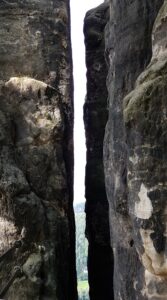 Hvis du orker at gå turen op fra Rathen, er det selvfølgelig det smarteste. Ifølge Google Maps er der kun 1 km ad stien fra Rathen, men turen byder naturligvis på en hel del højdemeter.