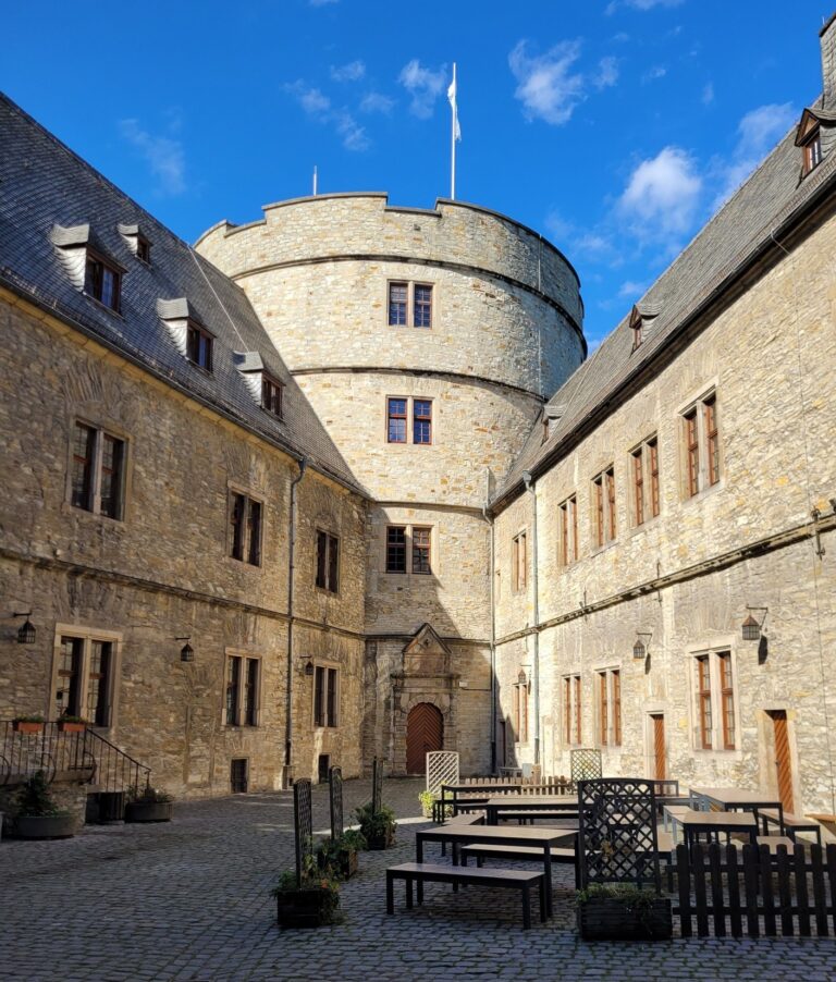 Den ligger på en lav bjergtop over Almedalen og er bygget af fyrstbiskopperne i Paderborn mellem 1603 og 1609 i Weserrenaissancestil.