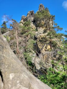 Vi skal helt sikkert se mere til “der Teufel”, når vi kommer til Harzen igen, men det ser ud til, at i hvert fald fr. Tyskofyt må nøjes med at se mange af klipperne nedefra. Ikke hele Teufelsmauer er for os med højdeskræk!