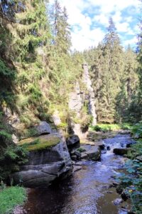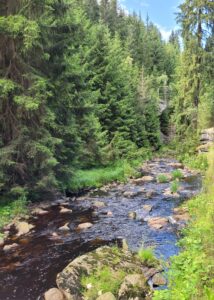 Schwarzwassertal byder på en skøn vandretur langs åen Schwarzer Pockau, i daglig tale Schwarzwasser, over enge, gennem skov og mellem flotte klipper. Det var en af vores bedste feriedage i 2024. Vi kunne formelig mærke stressen sive ud af kroppen.