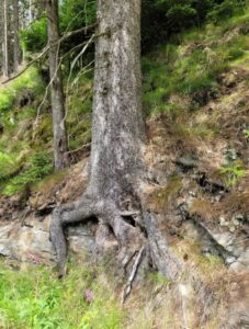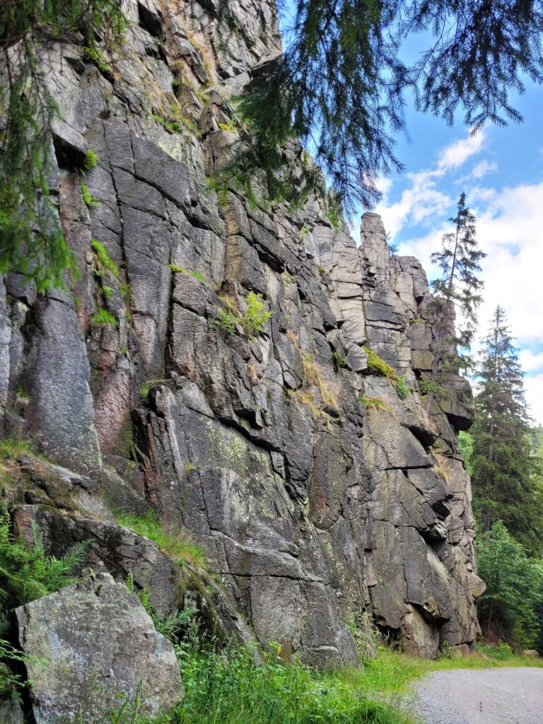 Vi fulgte vandløbet hele vejen til Nonnenfelsen, som er en spektakulær, lodret klippeformation, der rager mere end 60 meter i vejret lige ved siden af stien. Populær blandt klatrere og vildt flot. Åen er desuden rigtig livlig på denne strækning.