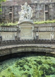 Kilden bruges selvfølgelig også som ønskebrønd. Man skal kaste en mønt over sin skulder i vandet, så får man et ønske opfyldt og får samtidig et løfte om en dag at vende tilbage til Donaueschingen. Vi smed ikke penge i vandet. Nu HAR vi jo været der…