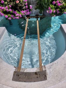 Så kom dagens helt gudskelov forbi. I skikkelse af en sød gammel dame, der talte så østrigsk, at jeg ikke rigtig kunne forstå, hvad hun sagde. Men det lykkedes hende til sidst at gøre mig begribeligt, at jeg gerne måtte soppe i den ene side af vandkunsten. Himmel! Det gjorde godt.