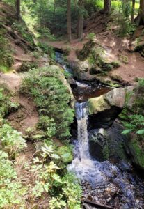 I samme område finder man Vogtlands vist nok eneste vandfald, Rissfälle. Det er ikke stort, men vi fik en god travetur derhen. Vandrestien var fin, men lad være med at følge stien videre opad fra vandfaldet. Det bliver mere og mere ufremkommeligt, og stien stopper ved en stribe haver!